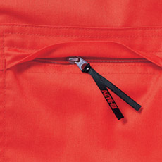 胸ポケットにはロゴ入りのファスナータブを採用。ファスナーを隠すオーバーフラップタイプ。