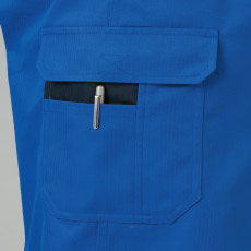 特殊な織り方により、ストライプ調に見えるおしゃれな生地。 ユニフォームをよりかっこよく見せます。 また、胸ポケットや脚部サイドのカーゴポケットは収納力だけでなく シックなカラーの切り返しを採用。 デザインのアクセントになっていて、かっこよさがアップ。