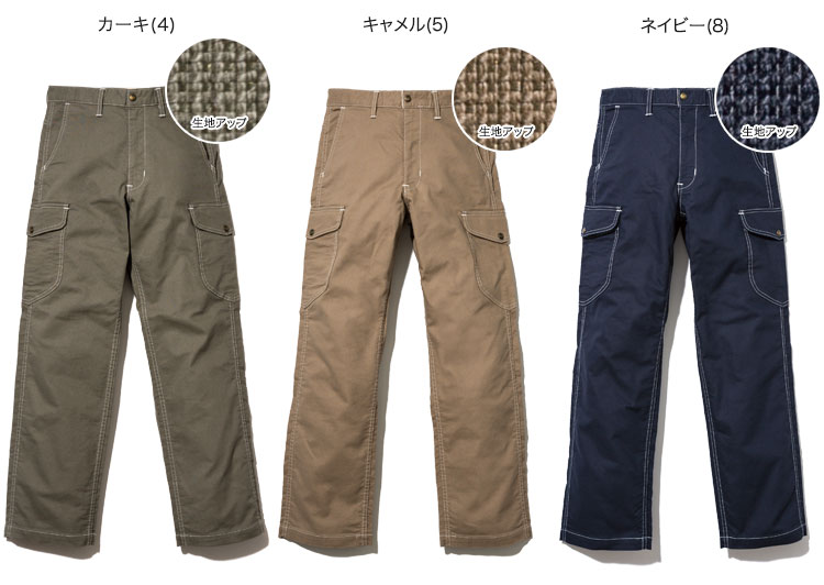 腰回りのもたつきを無くし、すっきりとしたシルエットが印象的なカーゴパンツ。 深さのあるサイドポケットや、使い勝手のいい後ろポケット等、機能性にもこだわった ワークパンツです。