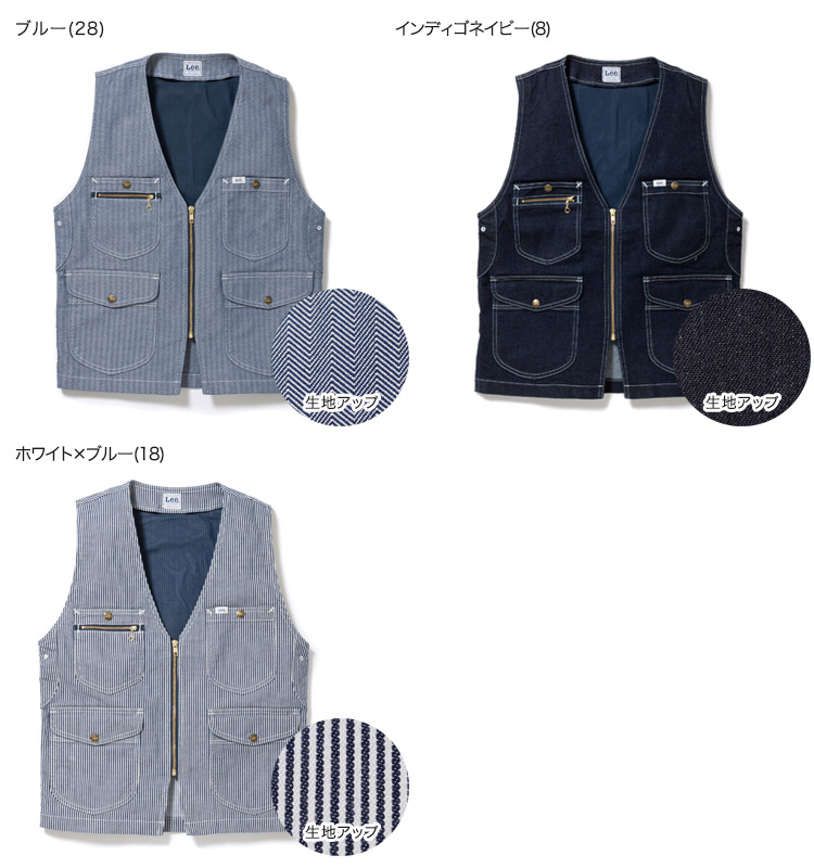 Leeシリーズ,春夏用,秋冬用,オールシーズン,インディゴ,ネイビー,ブルー,ヘリンボーン,デニム,ヒッコリー,ストライプ,男女兼用,ベスト,ノースリーブ,