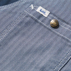 Leeロゴ入りのオリジナルボタンのついた左胸ポケット