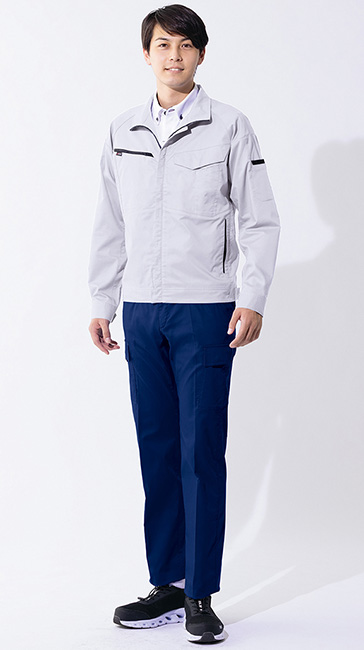 配色を抑えたシンプルでスタイリッシュなデザイン。上下で異なる色とも組み合わせやすく、物流や建設現場をはじめ、店舗スタッフやサービス業など、幅広い業種でのユニフォームとして最適です。