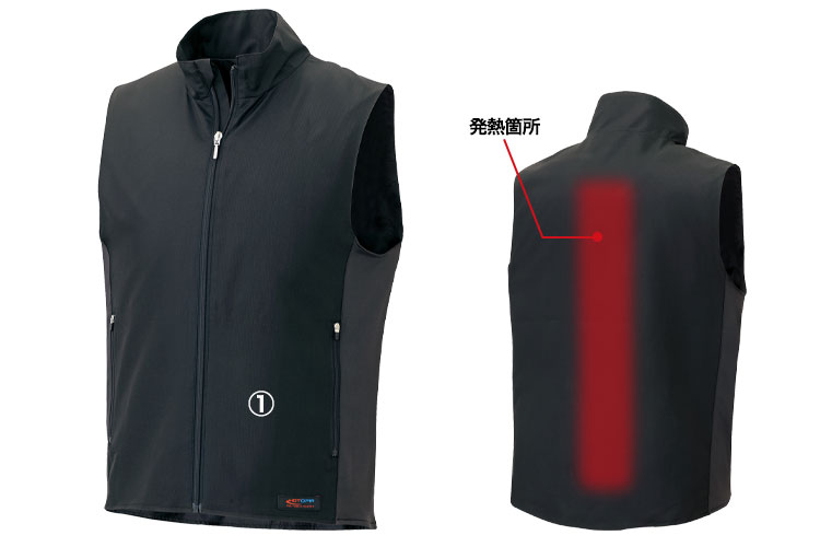 - 表地(ポリエステル100%)、脇身頃(ポリエステル81%・ポリウレタン19%)、裏地(ポリエステル100%)、 ヒーター部(HOTOPIAヒーター)