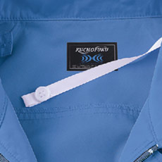 襟の内側の調整ヒモをとめることで、快適な風量を調節可能