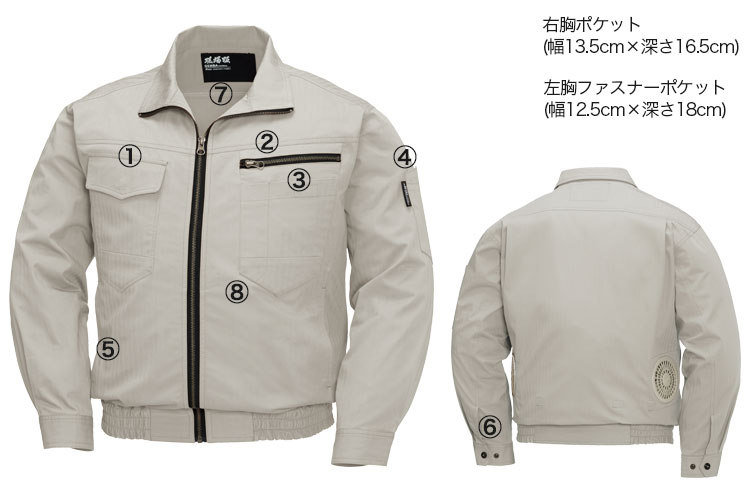 鉄工所など工場内で働くワーカーに人気の「綿100%」素材の空調服®。現場服シリーズの空調服®タイプなので、素材の機能性とかっこよさを両立させました。
