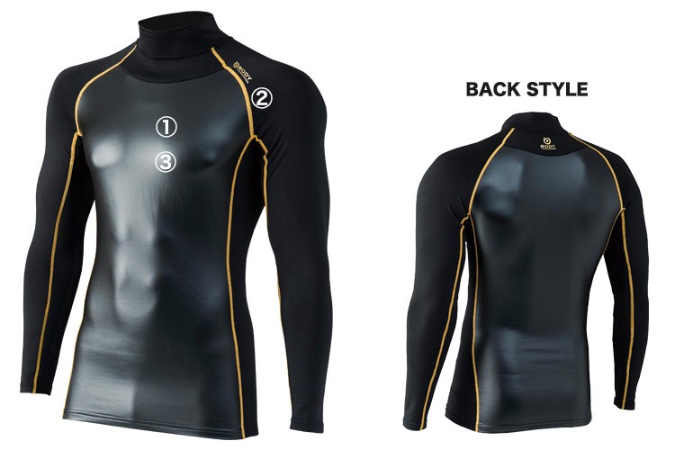 ,黒,ブラック,シルバー,長袖,ハイネックシャツ,防風,コンプレッション,ボディタフネス,ボデータフネス,ボディータフネス,