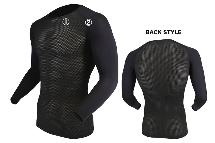 吸汗速乾、冷感性、通気性に優れたボディタフネスの長袖コンプレッション。腕部分は紫外線軽減効果があり、屋外作業にも向いています。ファン付き作業服のインナーとしてもおすすめです。