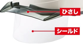 進和化学工業,透明ひさし,通気孔,収納式シールド,溝つき,溝付き,飛翔,飛来・落下物,墜落時保護