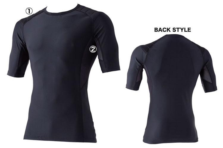 両肩に補強パッドが付き運搬時のサポートもバッチリのプロ仕様のCUC半袖コンプレッション。程よい締め付けと、ストレッチ性に優れているので動きやすく、現場作業での快適さを一番に考えたインナーです。