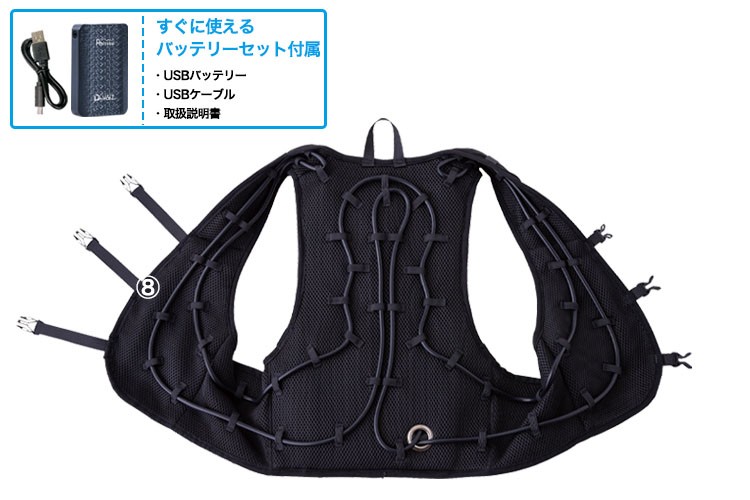 暑さ対策に最適なCUCのクーリングベスト。背中のタンクに凍らせたペットボトルと少量の水を入れることで、ベスト内のホースに冷水が巡り最高の冷却効果を実感!