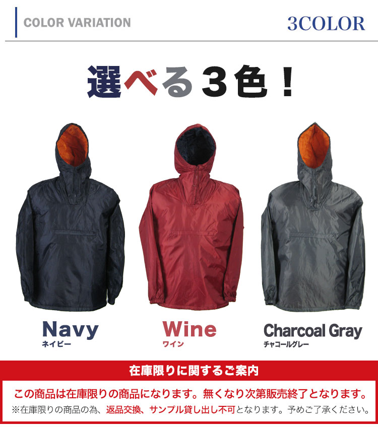防寒,軽量,合羽,ヤッケ,男女兼用,撥水,ネイビー,ネービー,ワイン,チャコールグレー