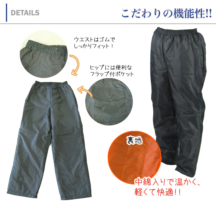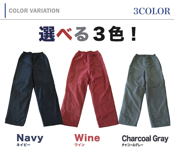 防寒,軽量,合羽,ヤッケ,パンツ,男女兼用,撥水,ネイビー,ネービー,ワイン,チャコールグレー
