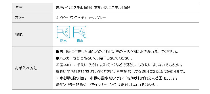 - 表地:ポリエステル100% 裏地:ポリエステル100%