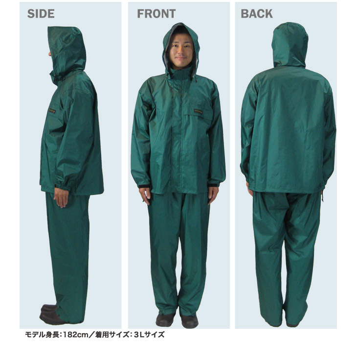 ワークショップとかでレインスーツ見て来たのですが安いが故にチョット引っ掛けたらあっけなく破れてしまいそうな物だったので、もう少し値段出しても丈夫そうな物がないかと探していたら色、サイズ、種類も豊富だったのでこのレインスーツに決めました。値段相当の納得いく物なのか少し心配ではありましたがそこそこ厚みのある素材で、袖や裾もスナップやベルクロで調節できるタイプなので納得です。使う本人がブラウンいいという事で買いましたが、雨降りって車からでもわかりやすい色の方がいいんじゃないかとターコイズかフラッシュグリーンを進めたのですが目立つから嫌だと却下されました。(^^;)