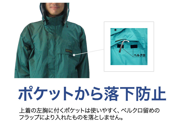 - ナイロン100%PVCラミネート ライナー/ポリエステル100% 機能:防水・撥水加工/袖口調節/裾ドローコード/裾調節/総裏メッシュ