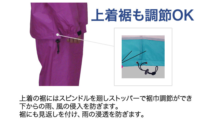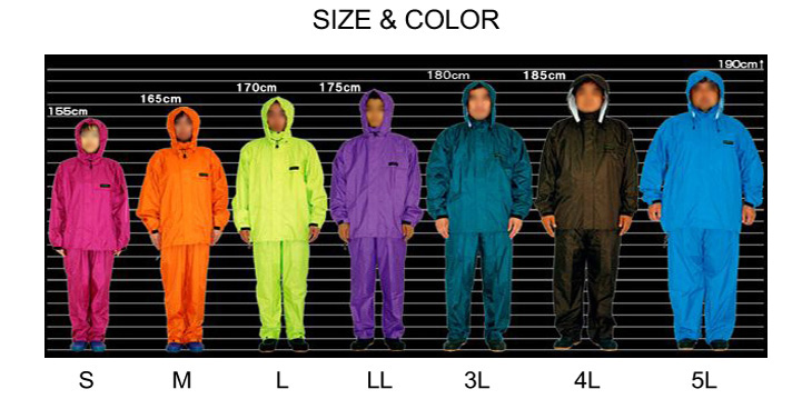 マゼッタ色のSサイズを購入しました。身長が150足らずの小柄な私にとってなかなかサイズが無くこのレインウェアスーツは着心地も良くサイズも良かったです。何よりマゼッタカラーは最高でした。
