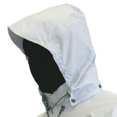ボタンで着脱できるレギュラーフードと備え付けのメットインフード付き。